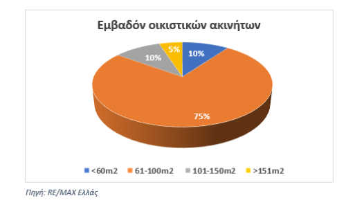 Αναφορικά με το εμβαδόν των οικιστικών ακινήτων που επέλεξαν οι ξένοι αγοραστές, η κατηγορία εκείνων που έχουν εμβαδόν από 61 τ.μ. έως 100 τ.μ. καταλαμβάνει το 75% των αγορών, καλύπτοντας τόσο επενδυτικές ανάγκες όσο και ιδιοκατοίκησης. Η κατηγορία ακίνητων εμβαδού έως 60 τ.μ. επιλέχθηκε από το 10% του συνόλου των ξένων αγοραστών, ενώ το ίδιο ποσοστό εμφανίζεται και για την απόκτηση ακινήτων επιφάνειας από 101 τ.μ. έως 150 τετραγωνικών μέτρων. Από την άλλη, ακίνητα άνω των 151 τ.μ. προσέγγισαν το ενδιαφέρον μόλις του 5% των ξένων αγοραστών.