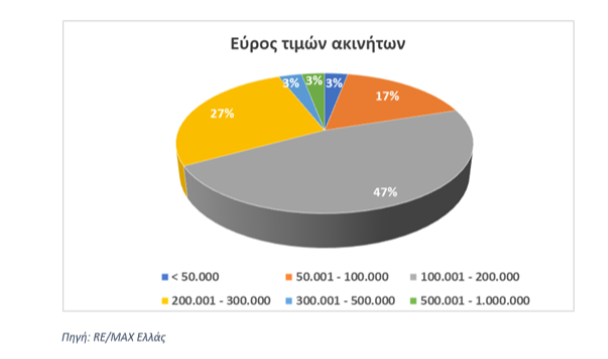 Αξίζει να τονιστεί, ότι το μεγαλύτερο μέρος των συναλλαγών όσον αφορά την αξία του ακινήτου, εντοπίζεται στην κατηγορία μεταξύ 100.001 ευρώ και 200.000 ευρώ (47%), ενώ η κατηγορία ακινήτων αξίας από 200.001 ευρώ έως 300.000 ευρώ επιλέχθηκε από το 27% του συνόλου των ξένων αγοραστών. Την ίδια στιγμή, το 17% των εν λόγω αγοραστών επέλεξαν ακίνητα αξίας από 50.001 ευρώ έως 100.000 ευρώ, ενώ πολύ πιο περιορισμένες είναι οι αγορές για ακίνητα αξίας έως 50.000 ευρώ και για ακίνητα αξίας από 300.001 ευρώ έως 500.000 ευρώ και από 500.001 έως 1.000.000 (το ποσοστό για την κάθε κατηγορία ανέρχεται σε 3%).