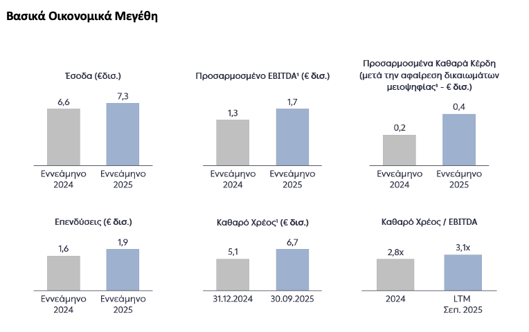 - Σε τροχιά επίτευξης του στόχου για προσαρμοσμένο EBITDA €2 δισ. το 2025