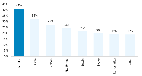 Πρώτον, το χρηματοοικονομικό μοντέλο της Intralot είναι ιδιαίτερα ελκυστικό, με σταθερή ανάπτυξη και ισχυρές θέσεις στην αγορά, όπως η τρίτη θέση στο Ηνωμένο Βασίλειο στον τομέα του iGaming και η ισχυρή παρουσία στη βιομηχανία λοταριών στις ΗΠΑ.