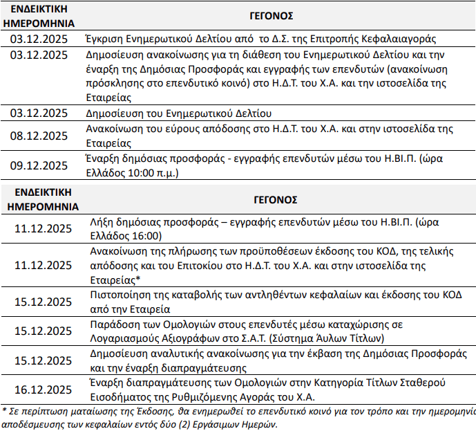 Το χρονοδιάγραμμα της Δημόσιας Προσφοράς