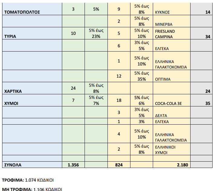 - Έλαια, λίπη: 6 κωδικοί με μειώσεις 5 έως 13%