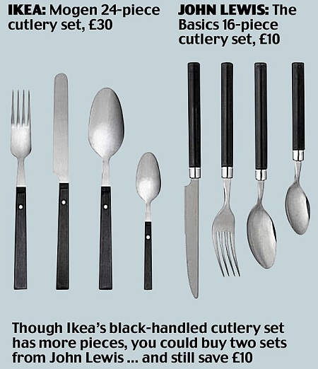 Οι John Lewis, Argos, Dunelm Mill αλλά και πολλά super market όπως το Asda ή το Tesco δημιουργούν παρόμοια είδη με την ΙΚΕΑ αλλά τα διαθέτουν στην αγορά σε πολύ χαμηλότερη τιμή, προσπαθώντας με αυτόν τον τρόπο να κερδίσουν τον ενδιαφέρον των καταναλωτών.