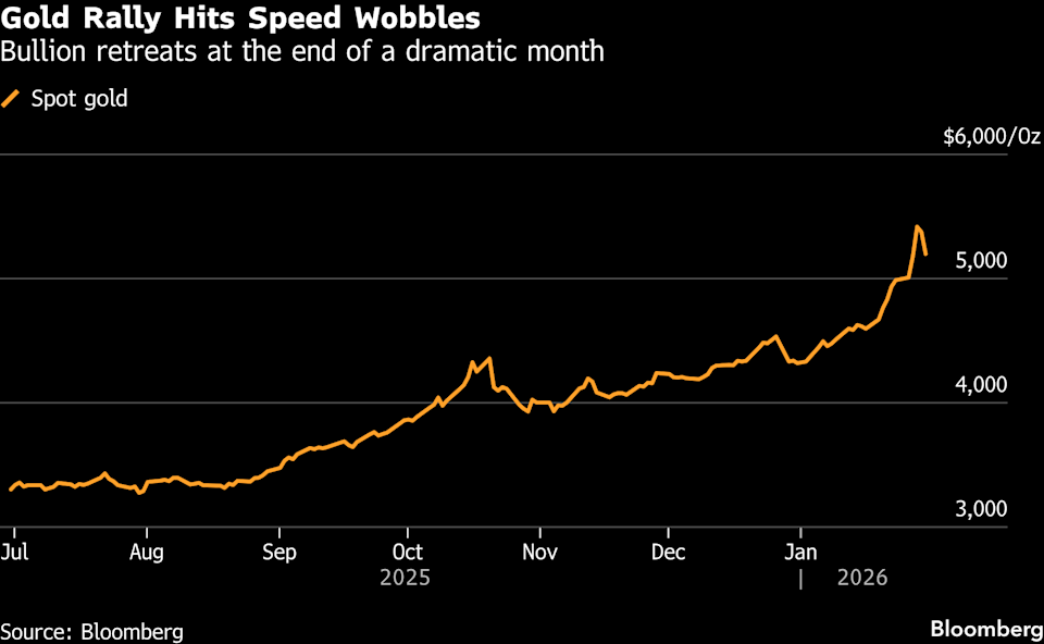 Παρά την υποχώρηση, ο χρυσός καταγράφει άνοδο περίπου 19% μέσα στον Ιανουάριο, πλησιάζοντας τη μεγαλύτερη μηνιαία του αύξηση από το 1982. Ακόμη πιο εντυπωσιακή είναι η εικόνα στο ασήμι, το οποίο ενισχύεται κατά περίπου 48% από τις αρχές του έτους.