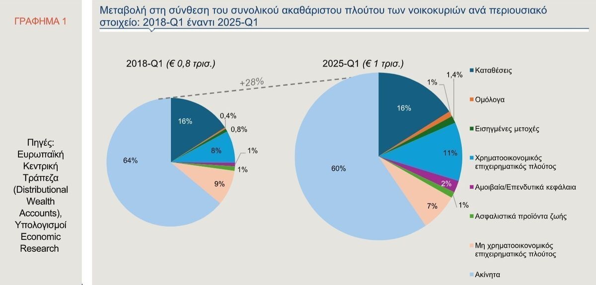 Πόσο αυξήθηκε ο πλούτος των ελληνικών νοικοκυριών από το 2018