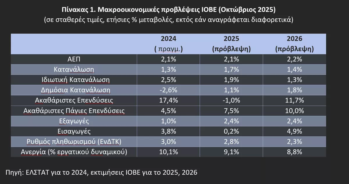 ΙΟΒΕ: Αναθεώρησε οριακά προς τα κάτω την ανάπτυξη - 2,1% το 2025 και 2,2% το 2026