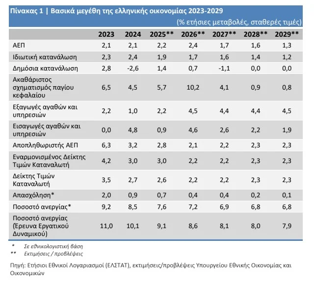 Αναφορικά με τον πληθωρισμό , αναμένεται να διαμορφωθεί στην περιοχή του 2,2%-2,3% την περίοδο 2026-2029 και η μέση ετήσια ανεργία να υποχωρήσει σε επίπεδα κάτω του 8% έως το τέλος της περιόδου.