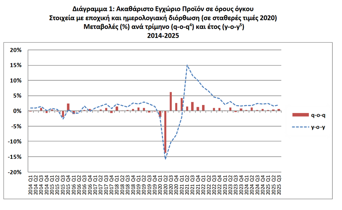 - Οι ακαθάριστες επενδύσεις παγίου κεφαλαίου αυξήθηκαν κατά 3,5% σε σχέση με το 2o τρίμηνο του 2025.