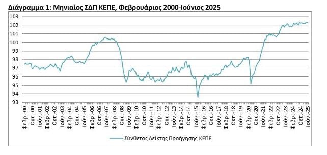 Η εν λόγω εξέλιξη ενδέχεται να αποτελεί τμήμα της ενδιάμεσης μεταβλητότητας του ΣΔΠ, σημειώνει το ΚΕΠΕ. Εναλλακτικά, δύναται να ακολουθεί την τάση ήπιας διόρθωσης προς τα κάτω που φαίνεται να χαρακτηρίζει την πορεία του μετά το πιο πρόσφατο μέγιστο που είχε καταγραφεί.